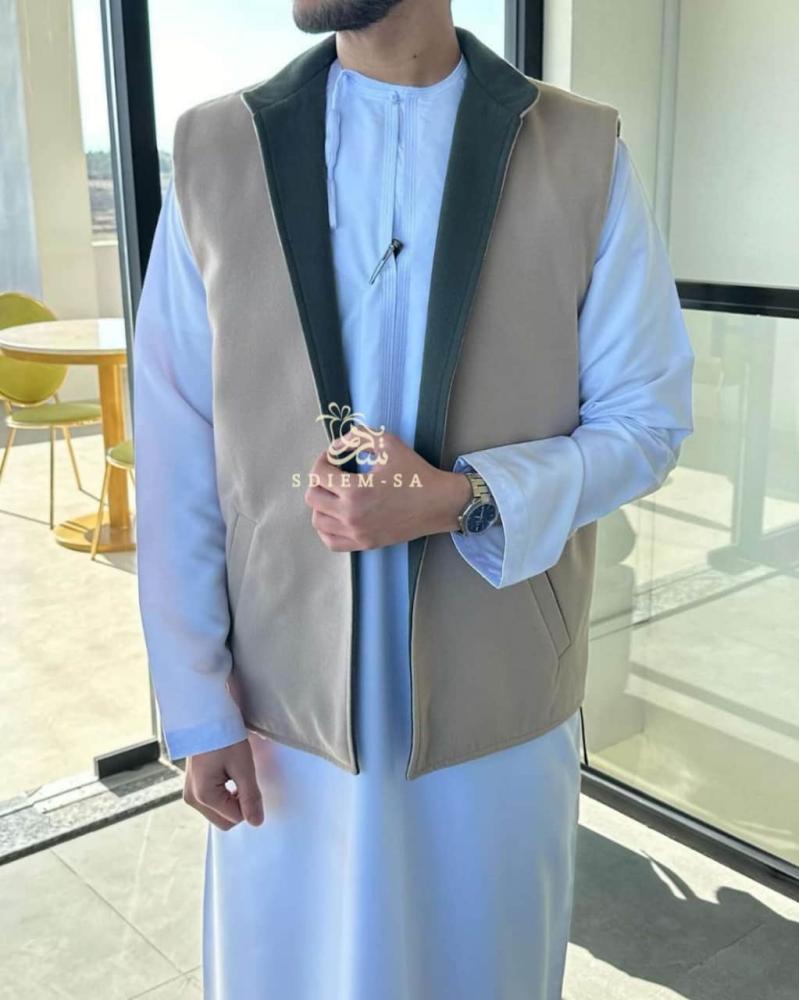 سديري رجالي شتوي مميز مصنوع بعناية من جوخ فاخر مع حشوة فرو داخلية تمنح دفئًا لا مثيل له.